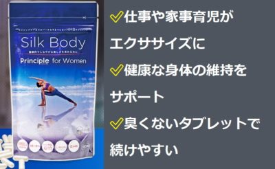 このシルクボディというサプリメントは、そんな日常の運動をエクササイズに変えて、健康的なボディラインにアプローチするサプリなんです。